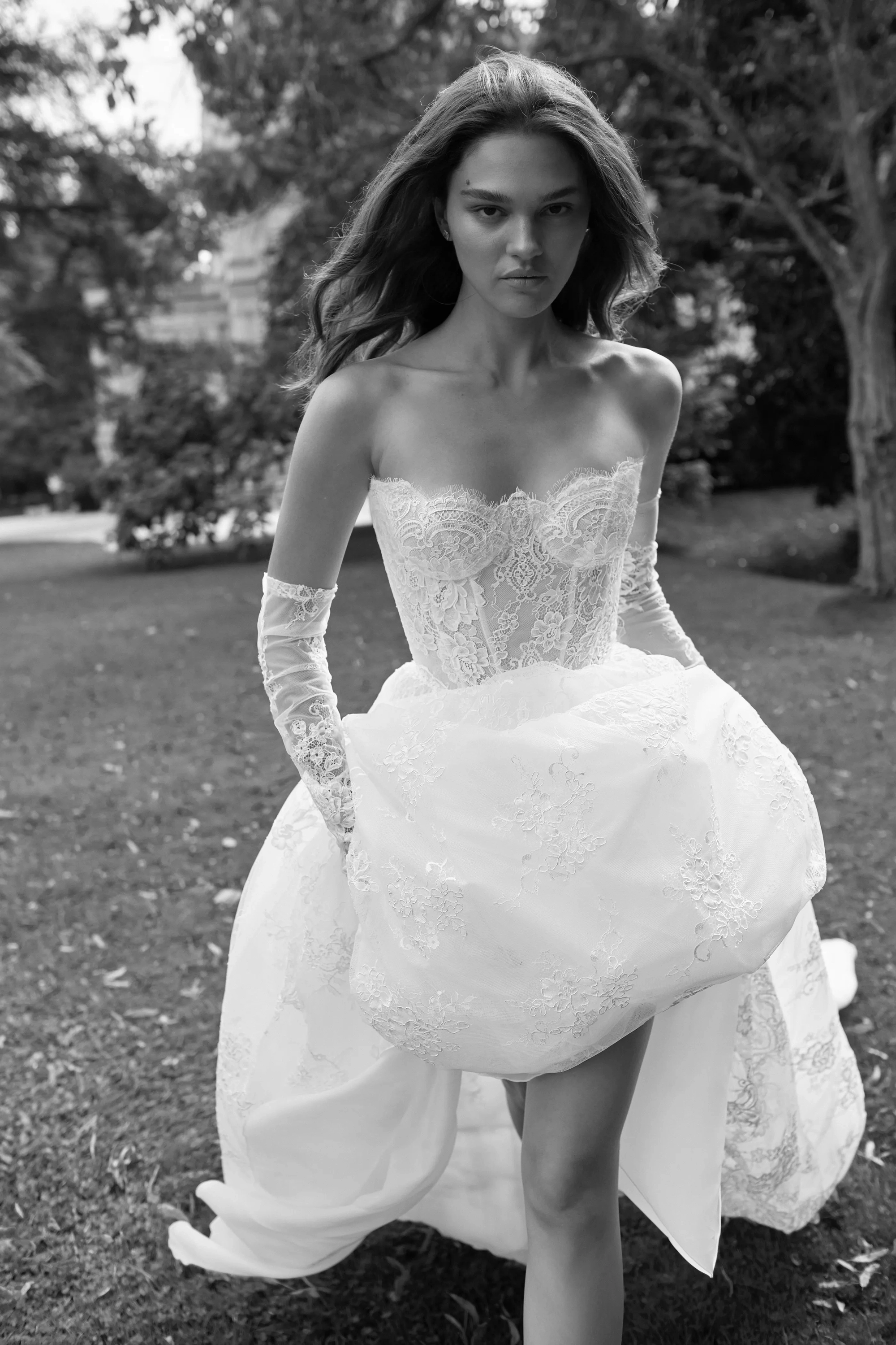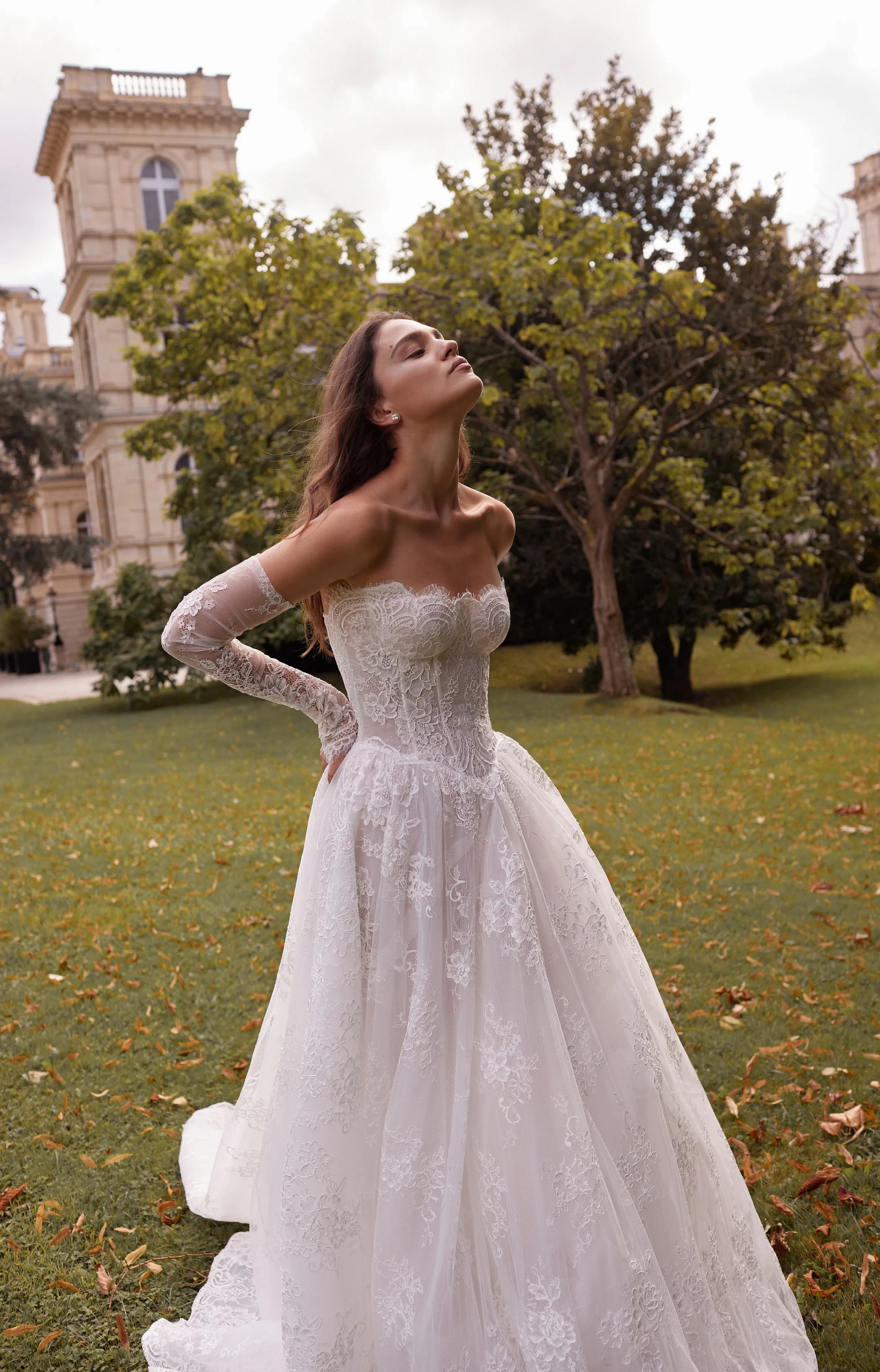 Please note that we are currently showcasing the full collections from our designers. Not all gowns are readily available in-store. To find out more about our in-store inventory, please contact our Chicago Store or our Oakbrook Store.