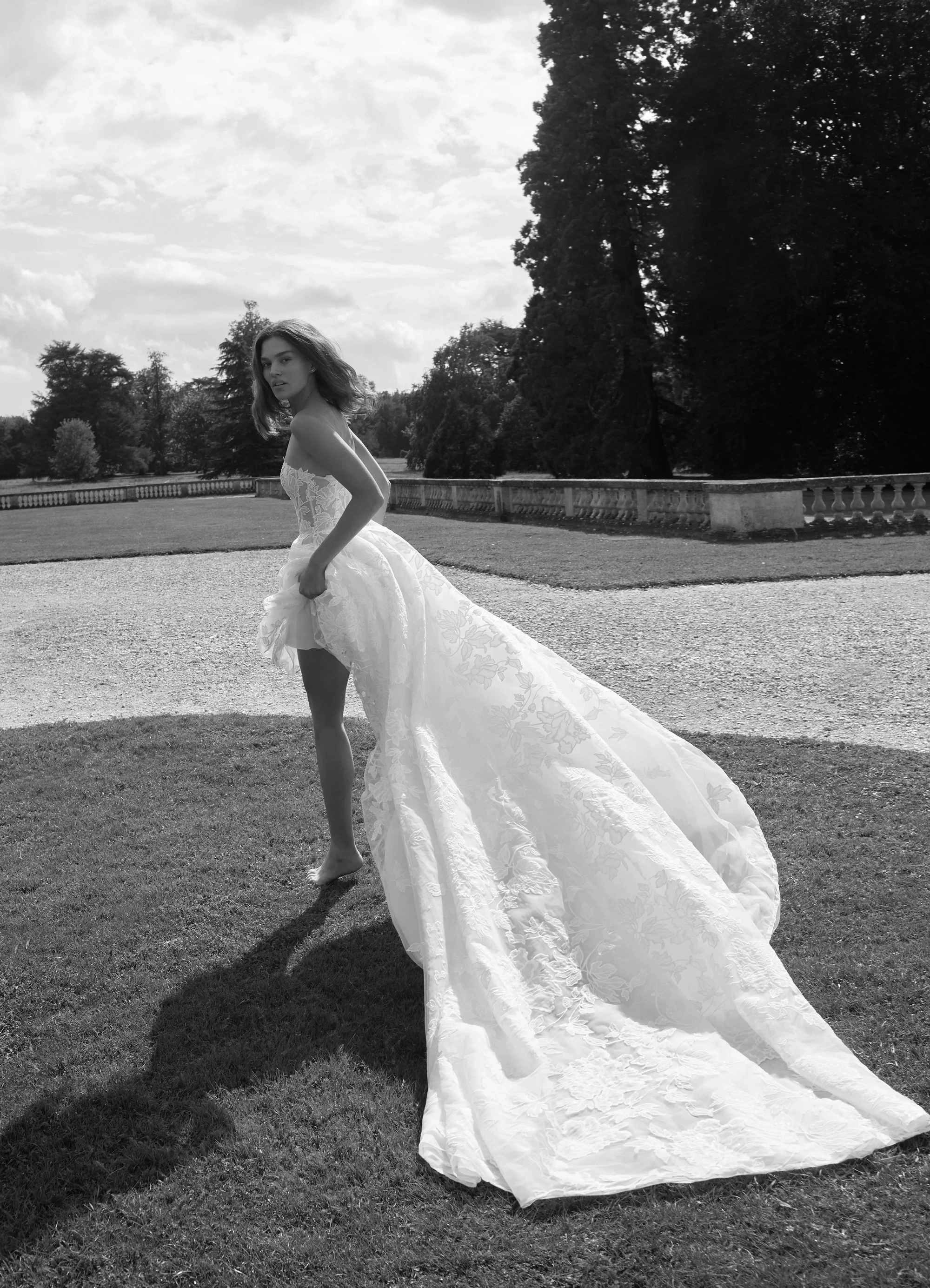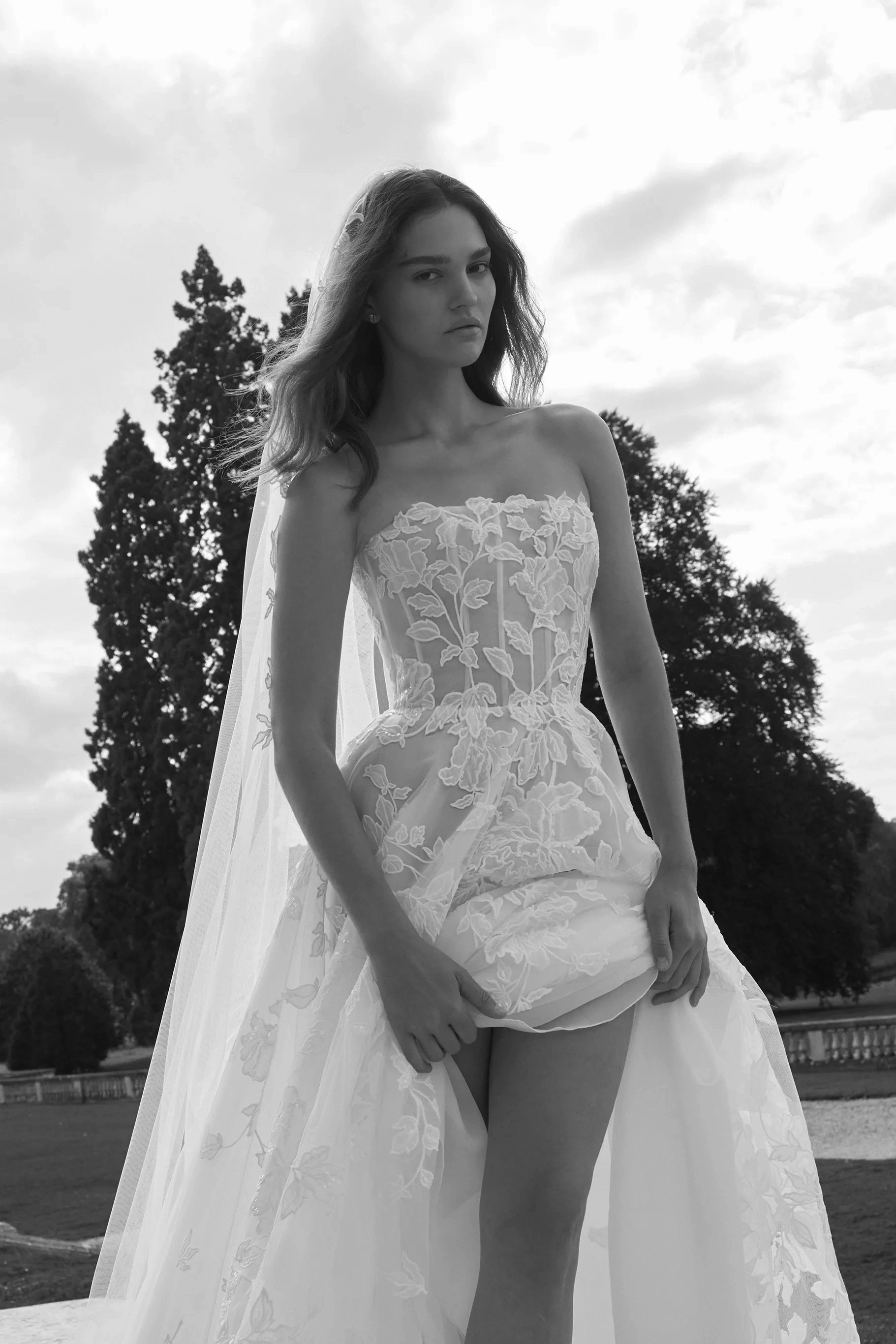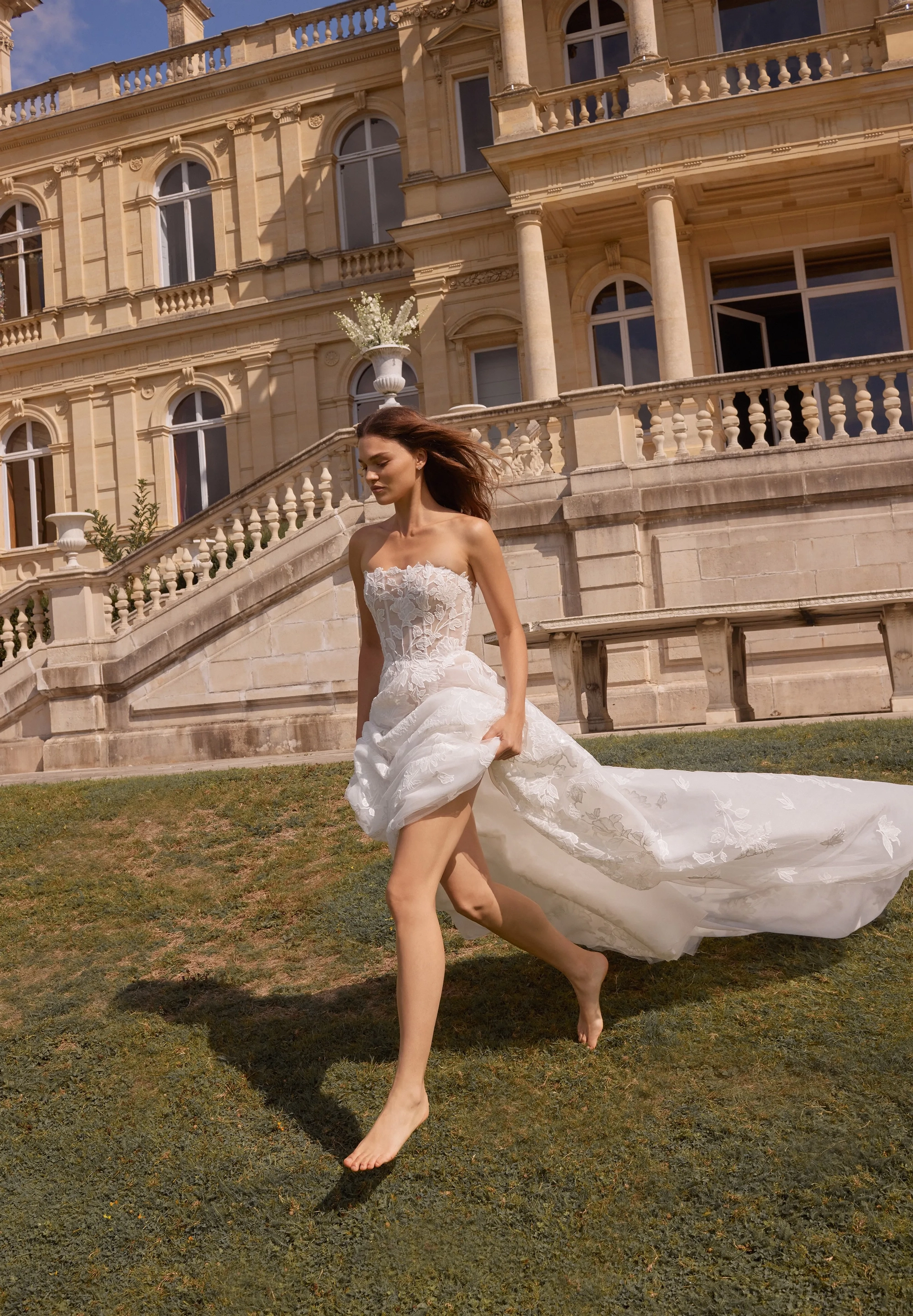 Please note that we are currently showcasing the full collections from our designers. Not all gowns are readily available in-store. To find out more about our in-store inventory, please contact our Chicago Store or our Oakbrook Store.