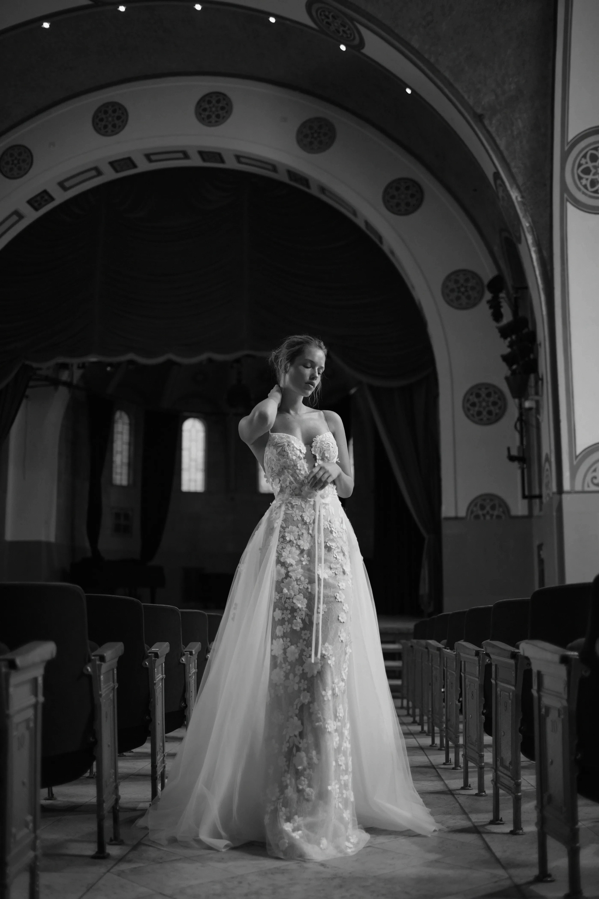 Please note that we are currently showcasing the full collections from our designers. Not all gowns are readily available in-store. To find out more about our in-store inventory, please contact our Chicago Store or our Oakbrook Store.