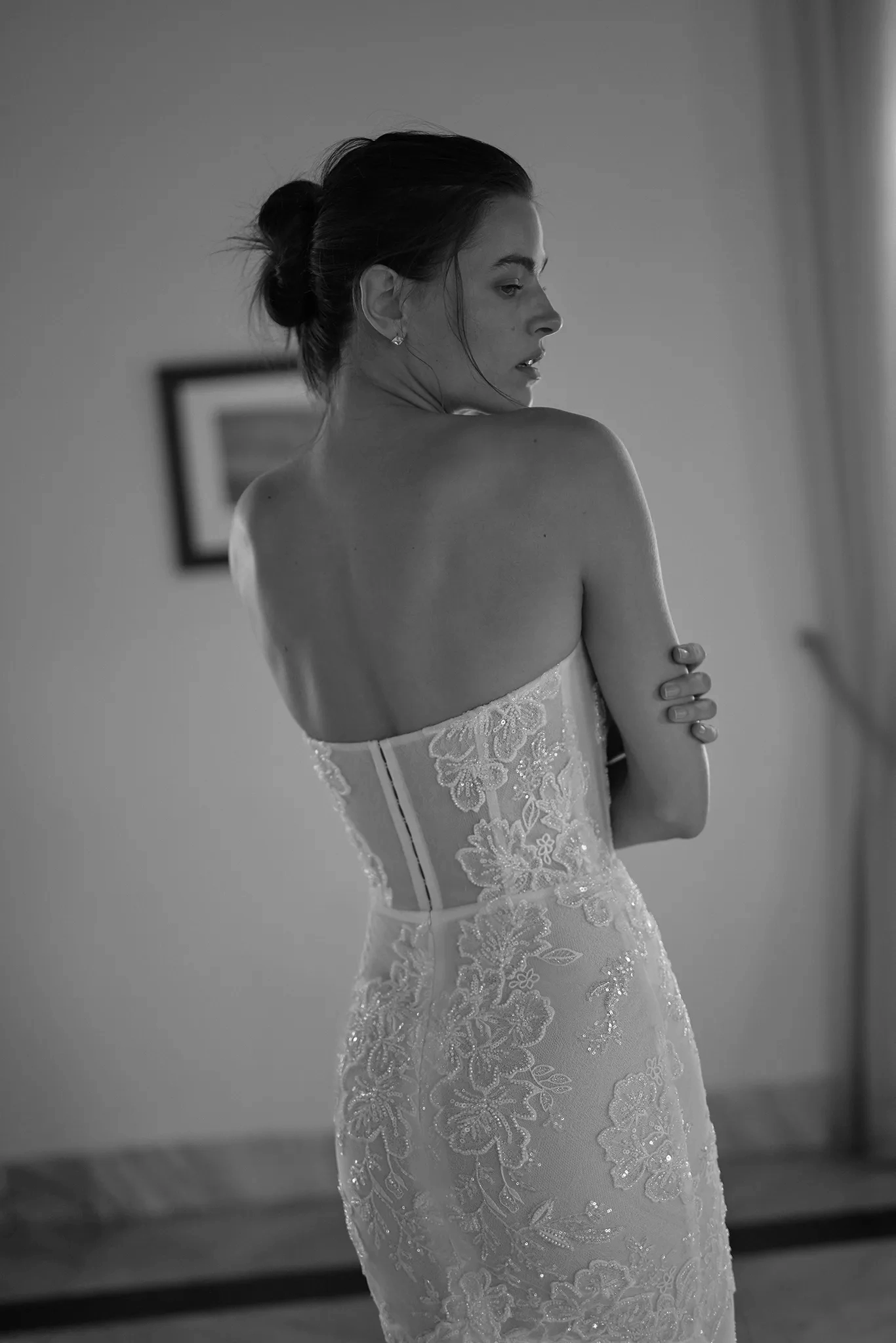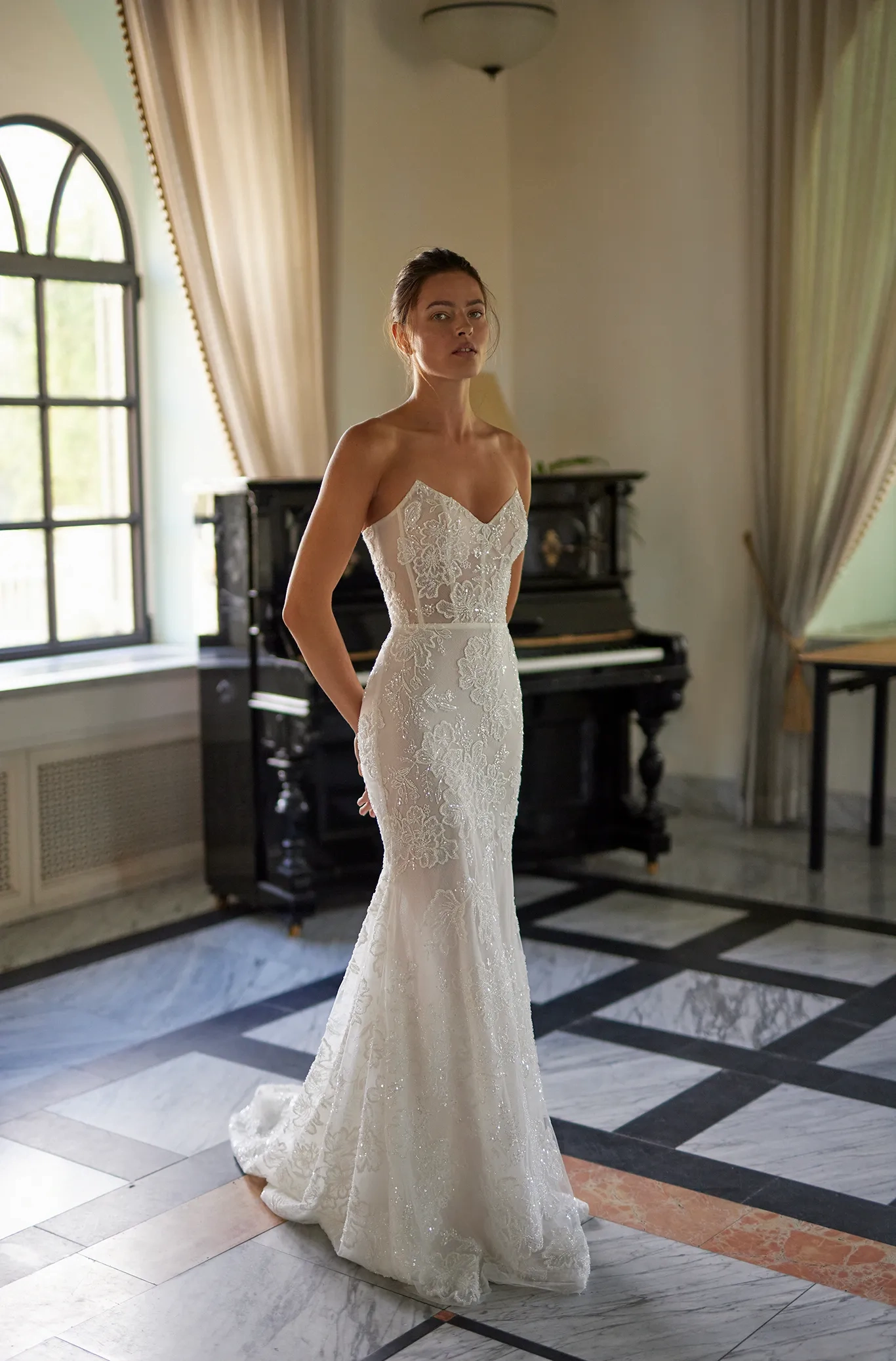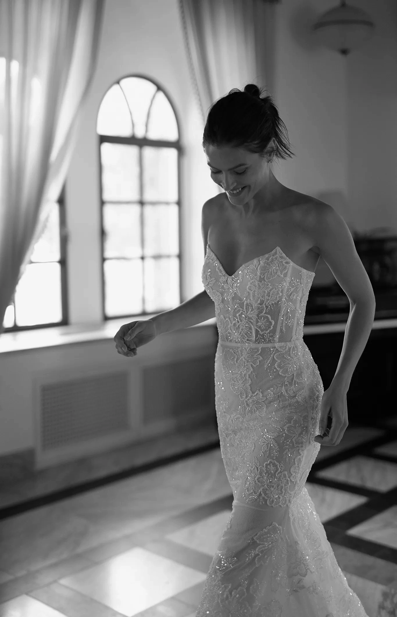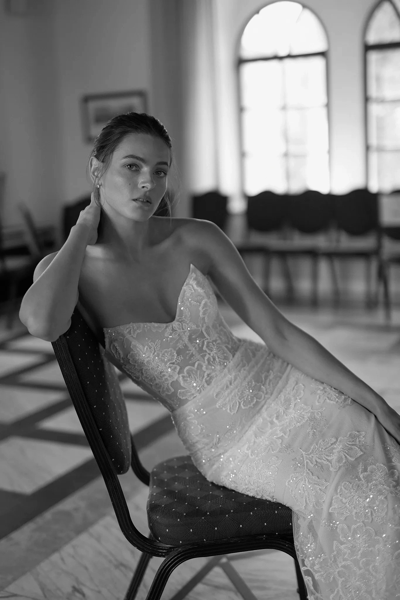Please note that we are currently showcasing the full collections from our designers. Not all gowns are readily available in-store. To find out more about our in-store inventory, please contact our Chicago Store or our Oakbrook Store.