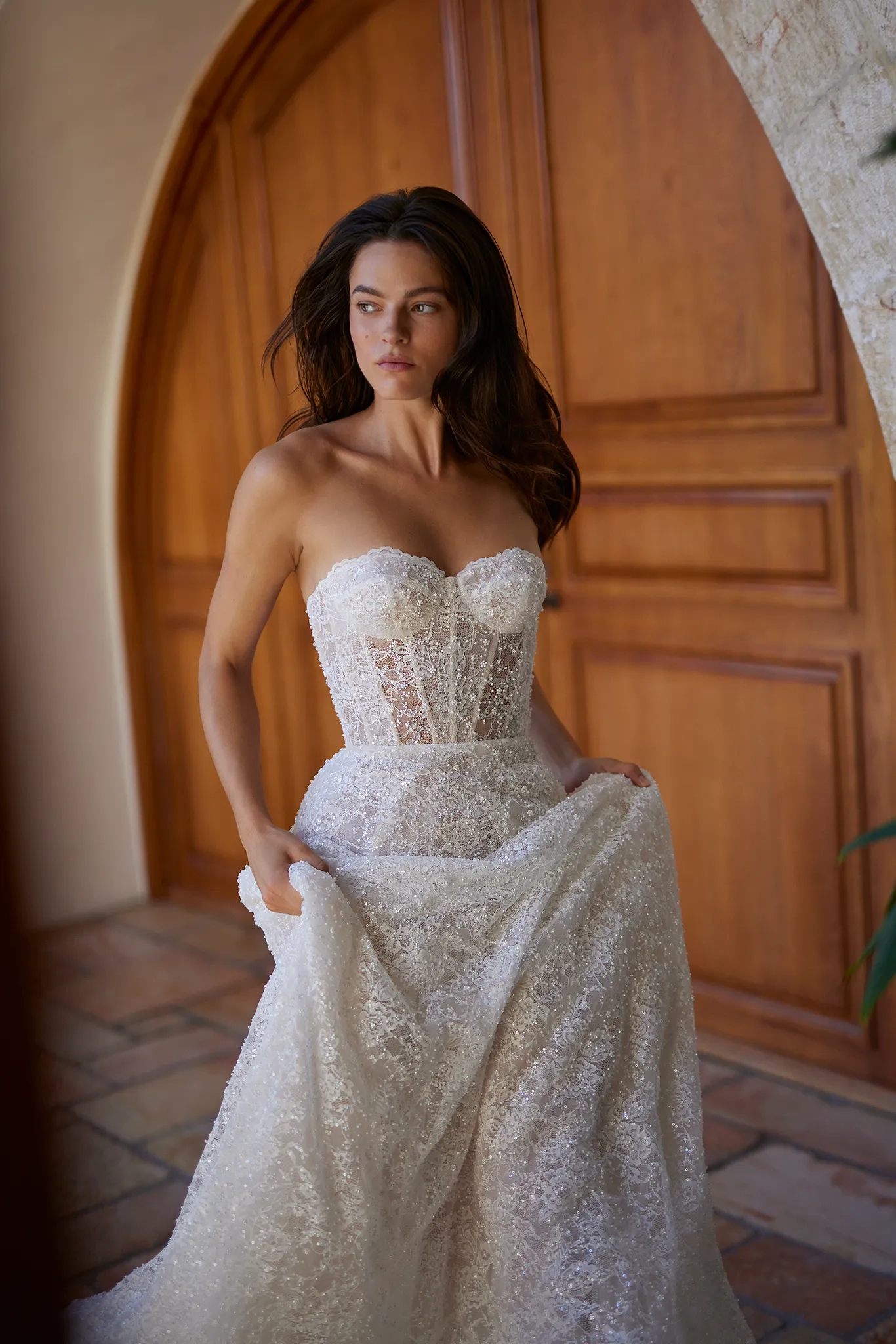 Please note that we are currently showcasing the full collections from our designers. Not all gowns are readily available in-store. To find out more about our in-store inventory, please contact our Chicago Store or our Oakbrook Store.