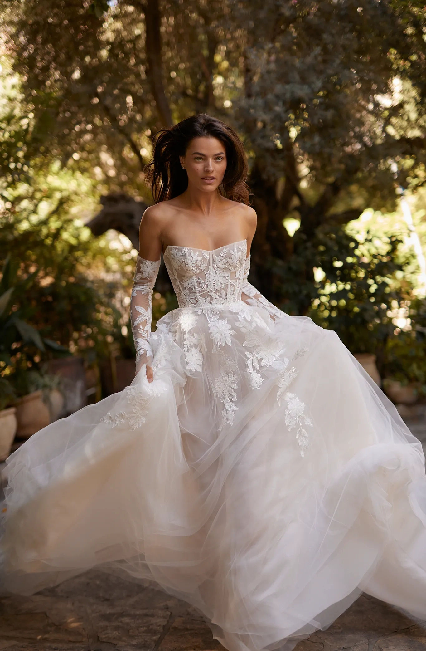 Please note that we are currently showcasing the full collections from our designers. Not all gowns are readily available in-store. To find out more about our in-store inventory, please contact our Chicago Store or our Oakbrook Store.