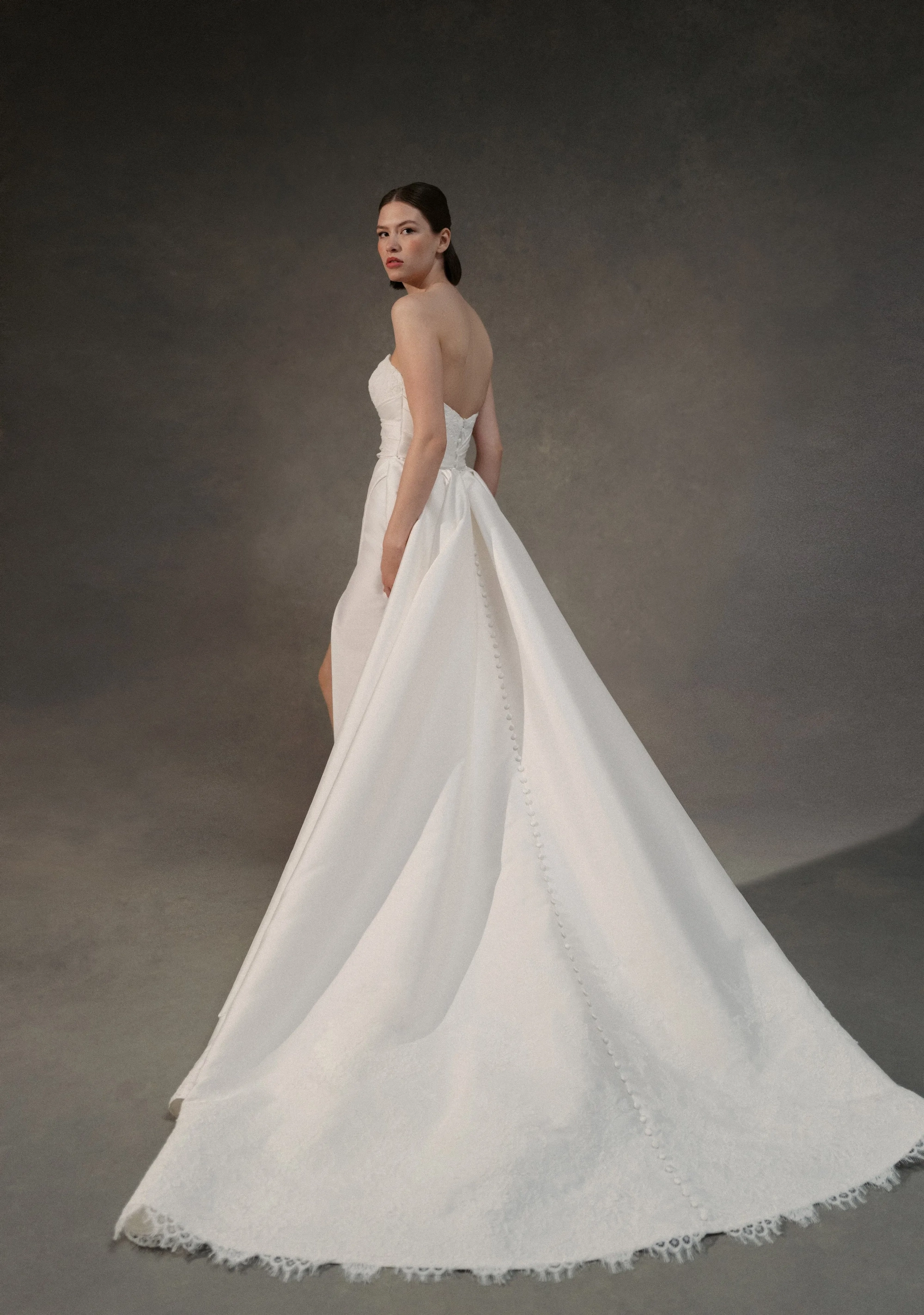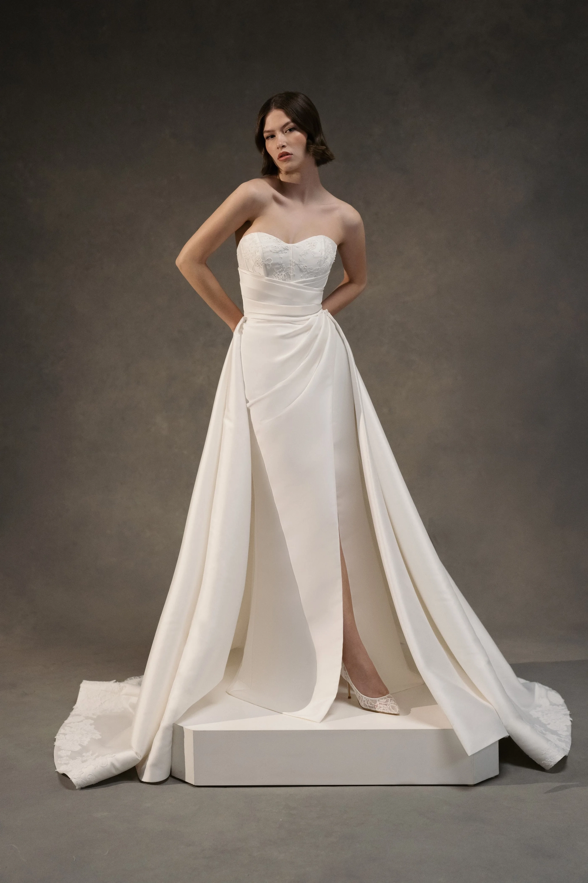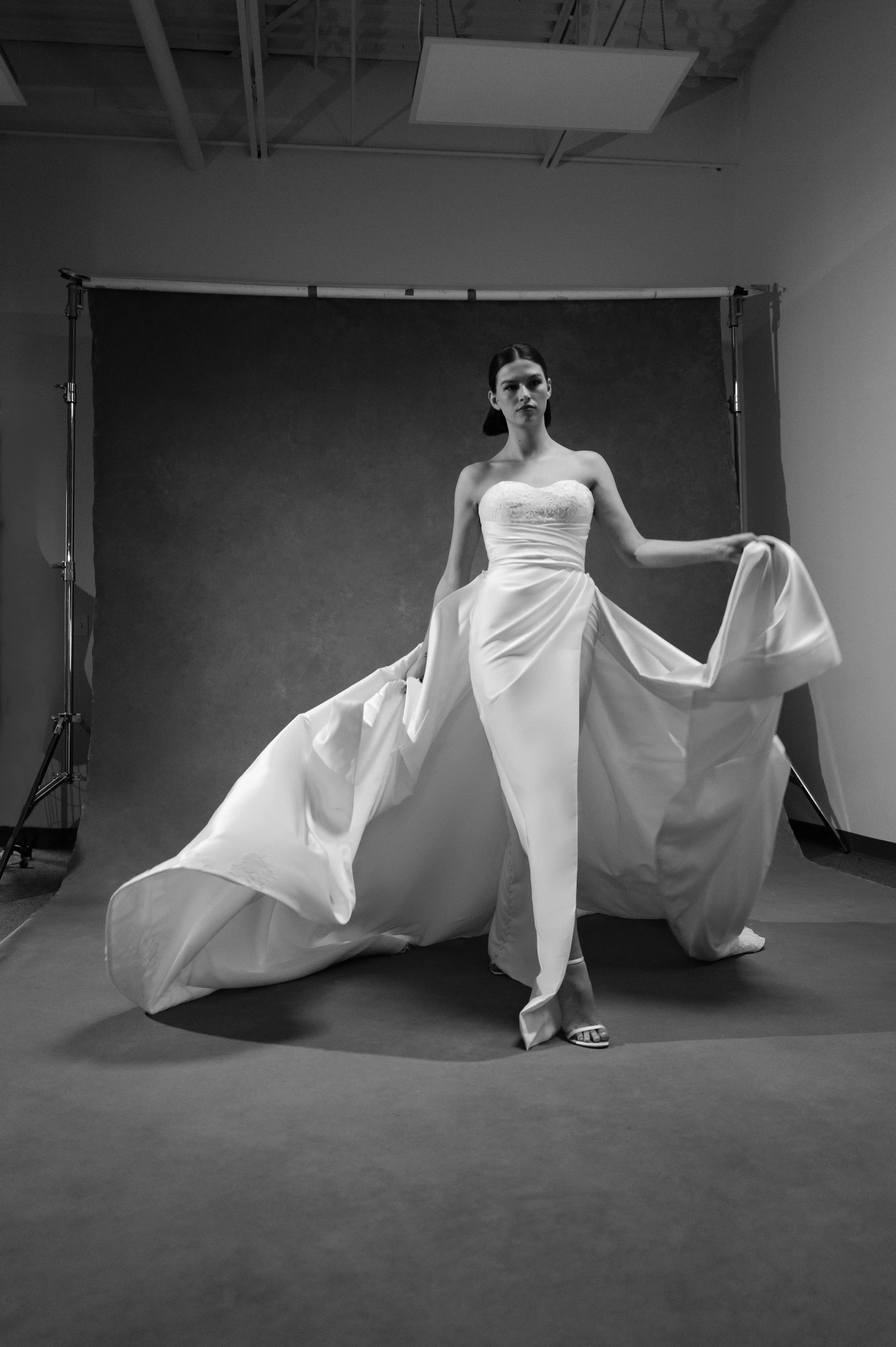 Please note that we are currently showcasing the full collections from our designers. Not all gowns are readily available in-store. To find out more about our in-store inventory, please contact our Chicago Store or our Oakbrook Store.