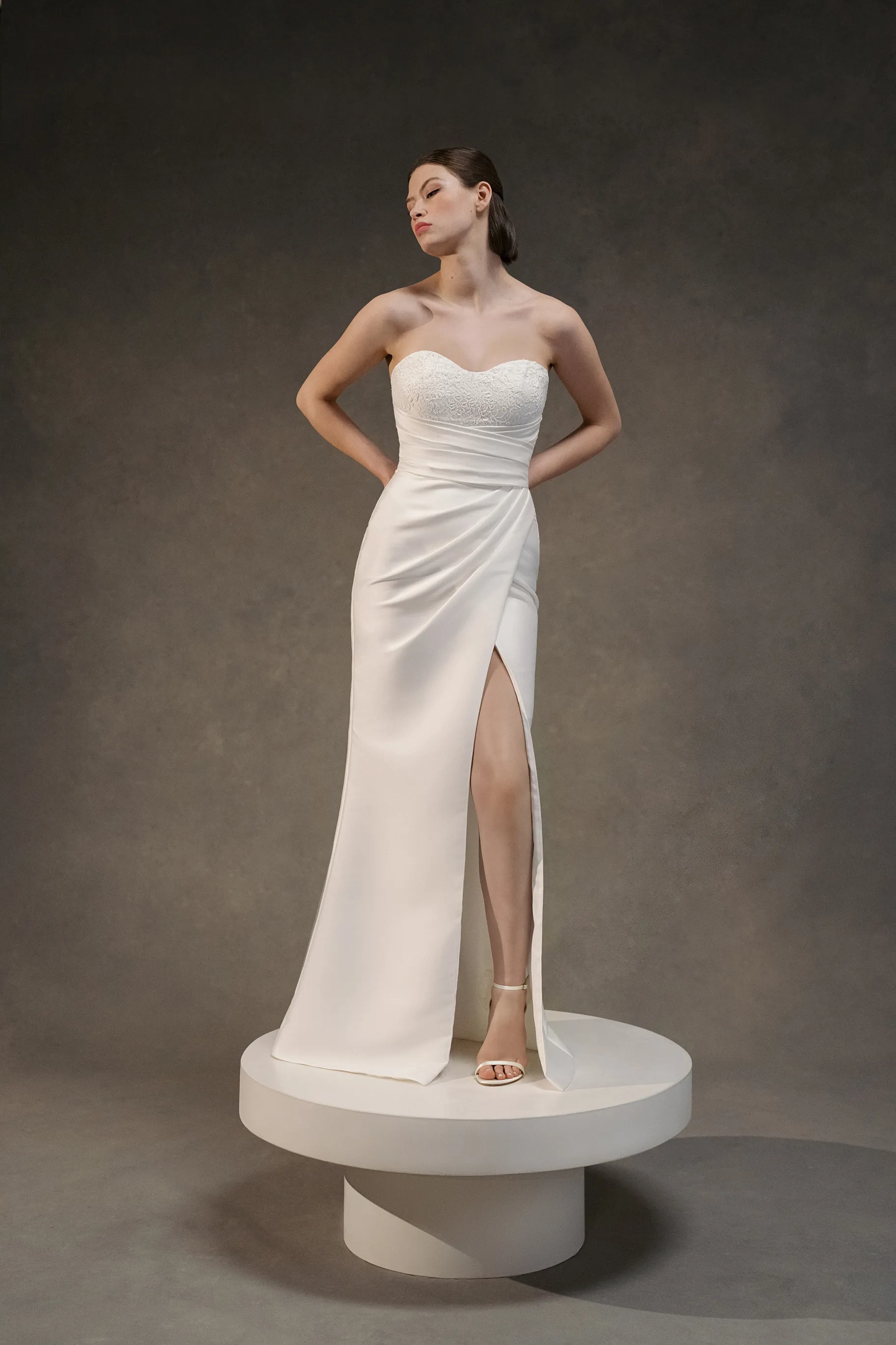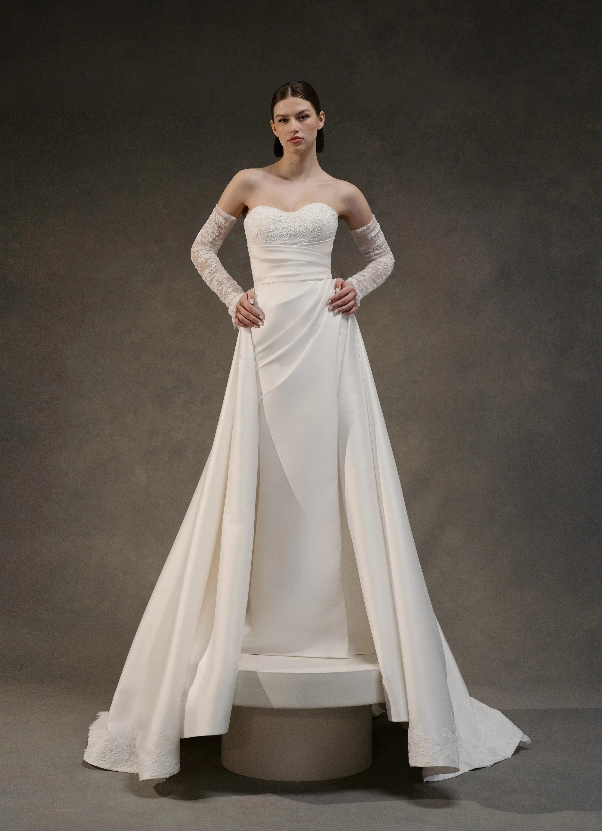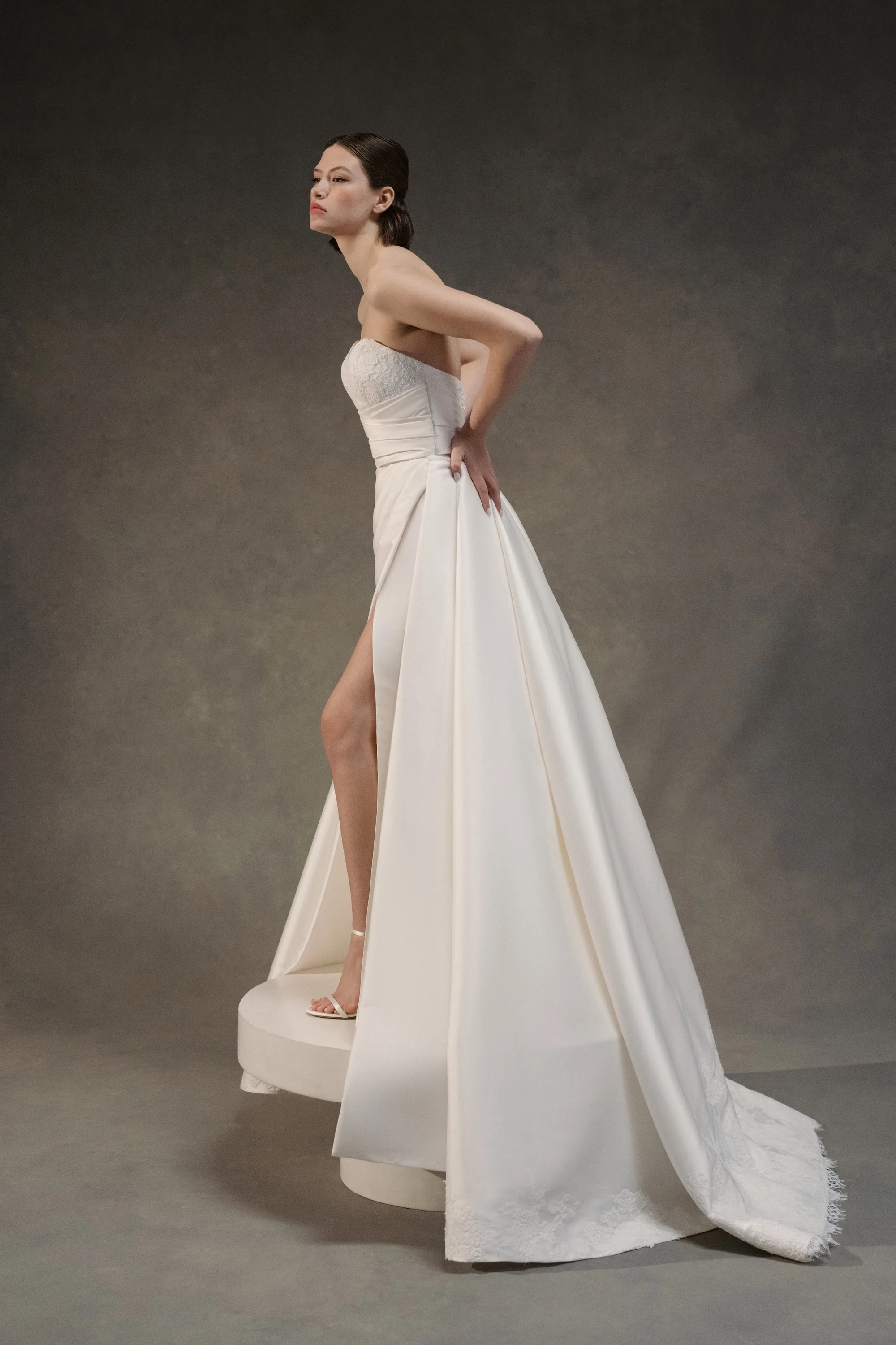 Please note that we are currently showcasing the full collections from our designers. Not all gowns are readily available in-store. To find out more about our in-store inventory, please contact our Chicago Store or our Oakbrook Store.