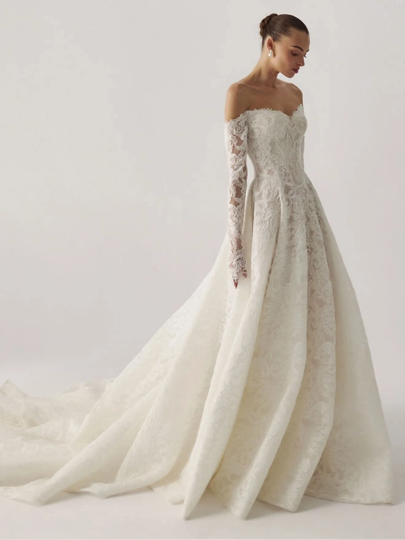 Please note that we are currently showcasing the full collections from our designers. Not all gowns are readily available in-store. To find out more about our in-store inventory, please contact our Chicago Store or our Oakbrook Store.