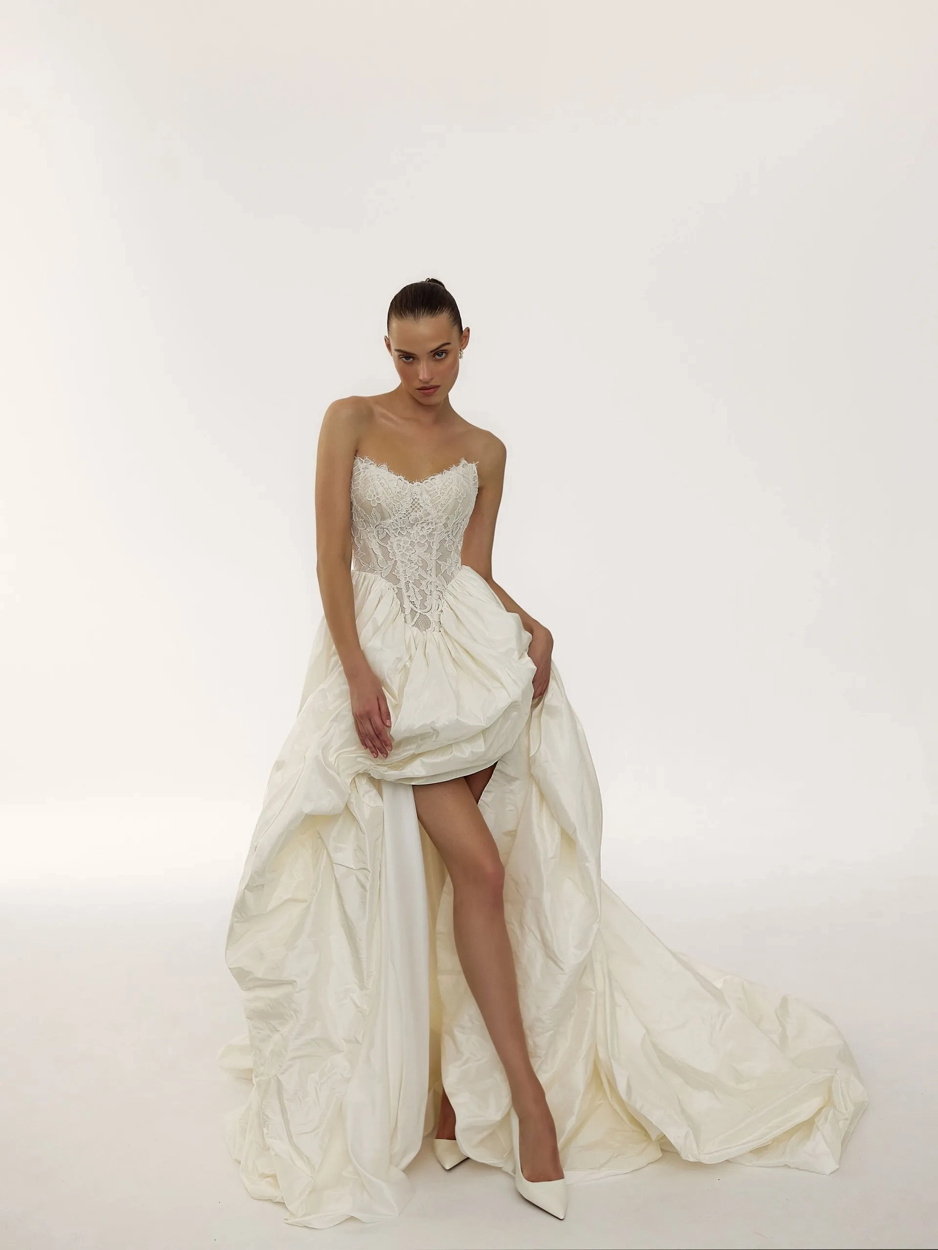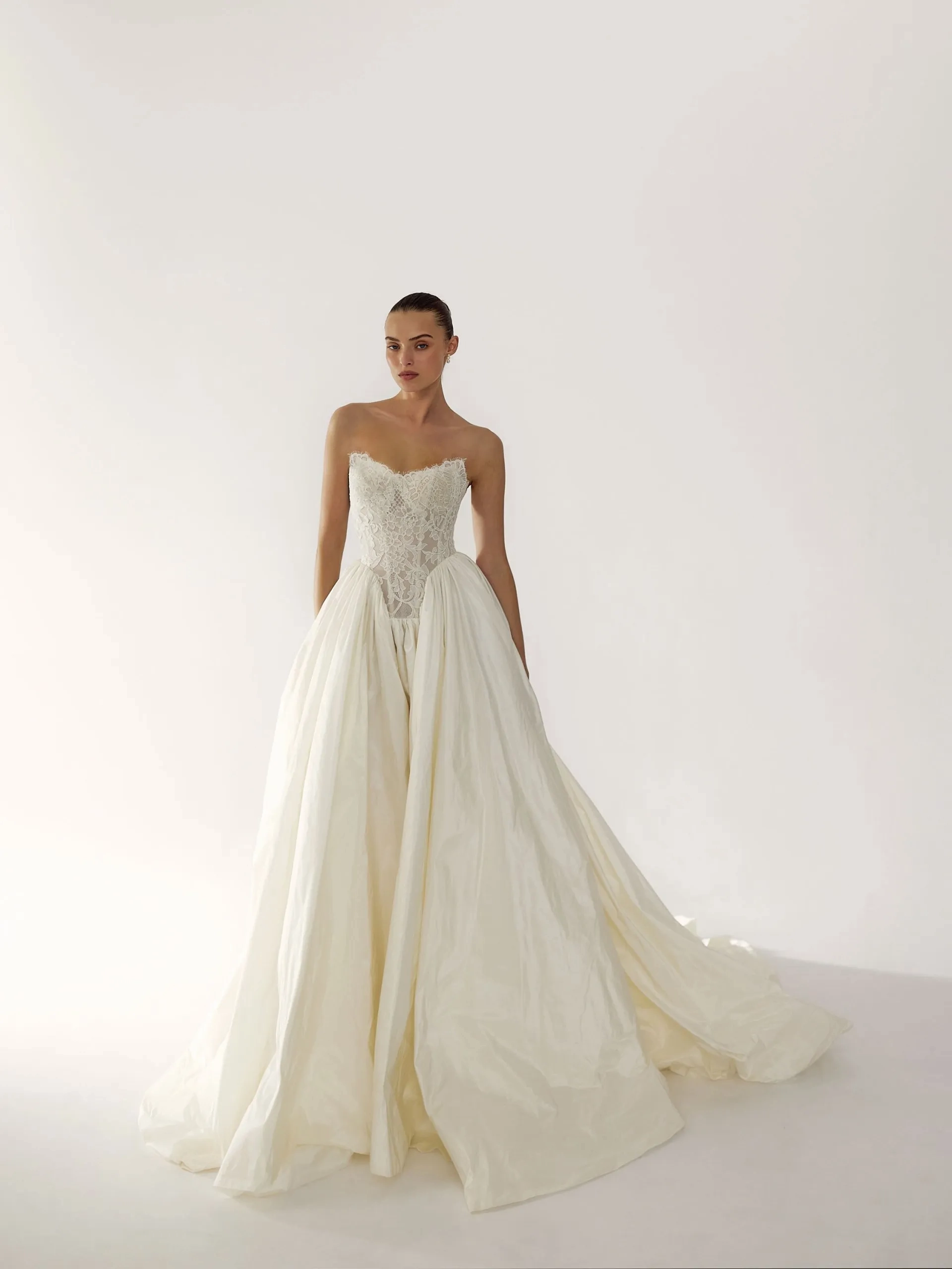 Please note that we are currently showcasing the full collections from our designers. Not all gowns are readily available in-store. To find out more about our in-store inventory, please contact our Chicago Store or our Oakbrook Store.