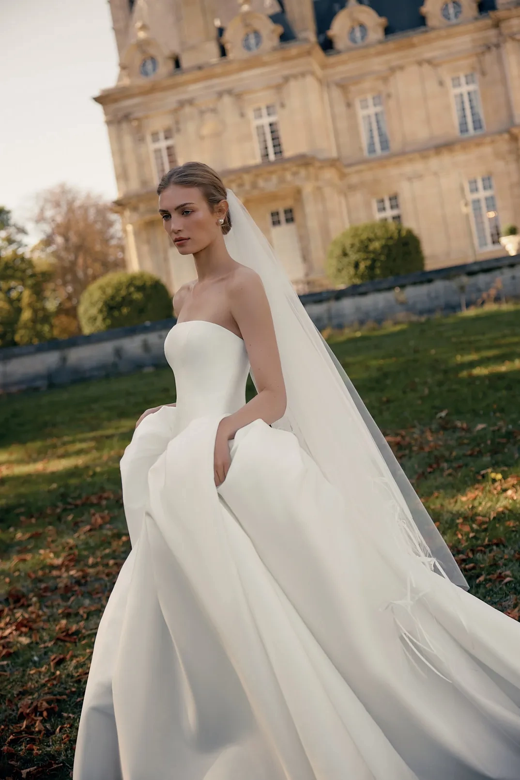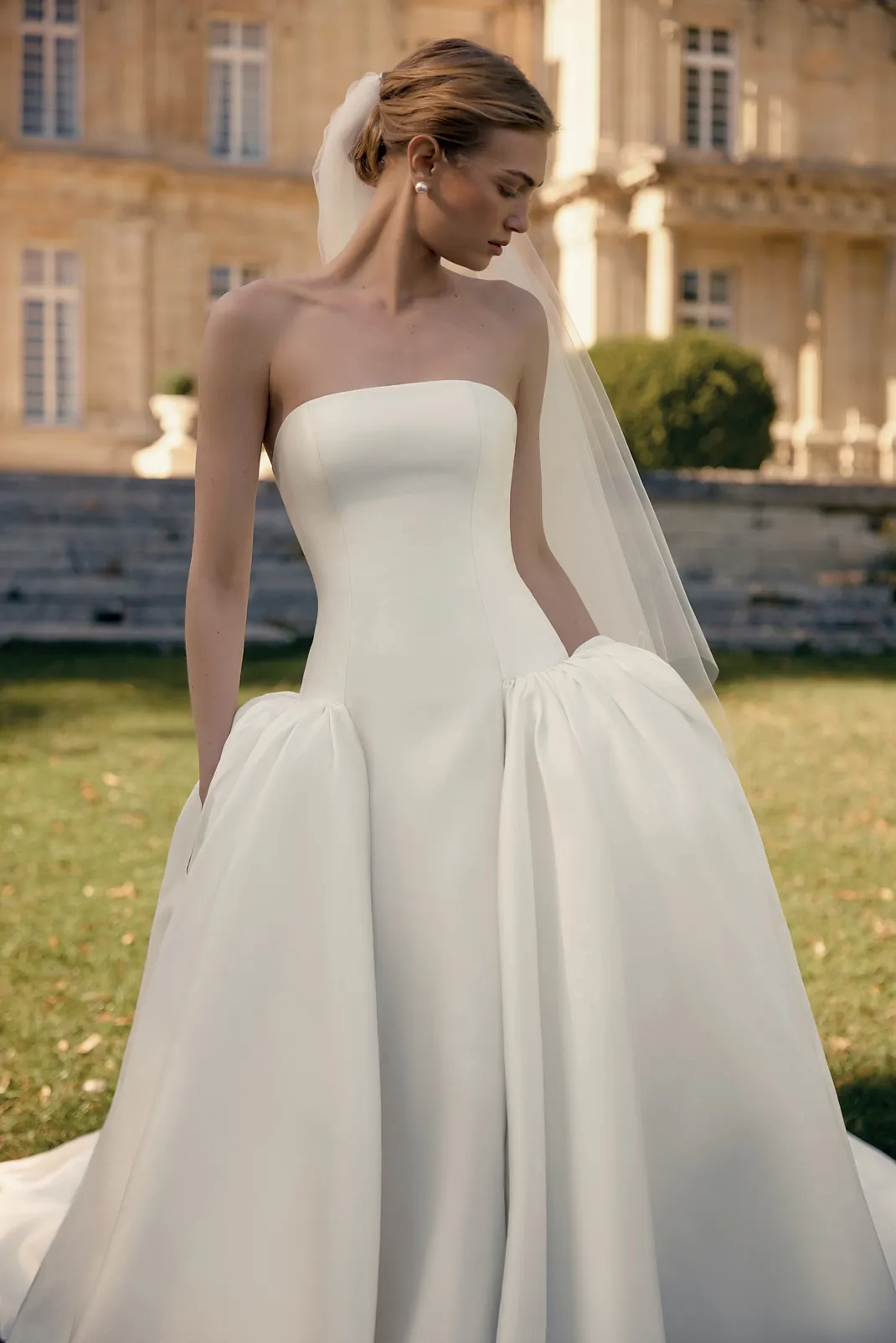 Please note that we are currently showcasing the full collections from our designers. Not all gowns are readily available in-store. To find out more about our in-store inventory, please contact our Chicago Store or our Oakbrook Store.