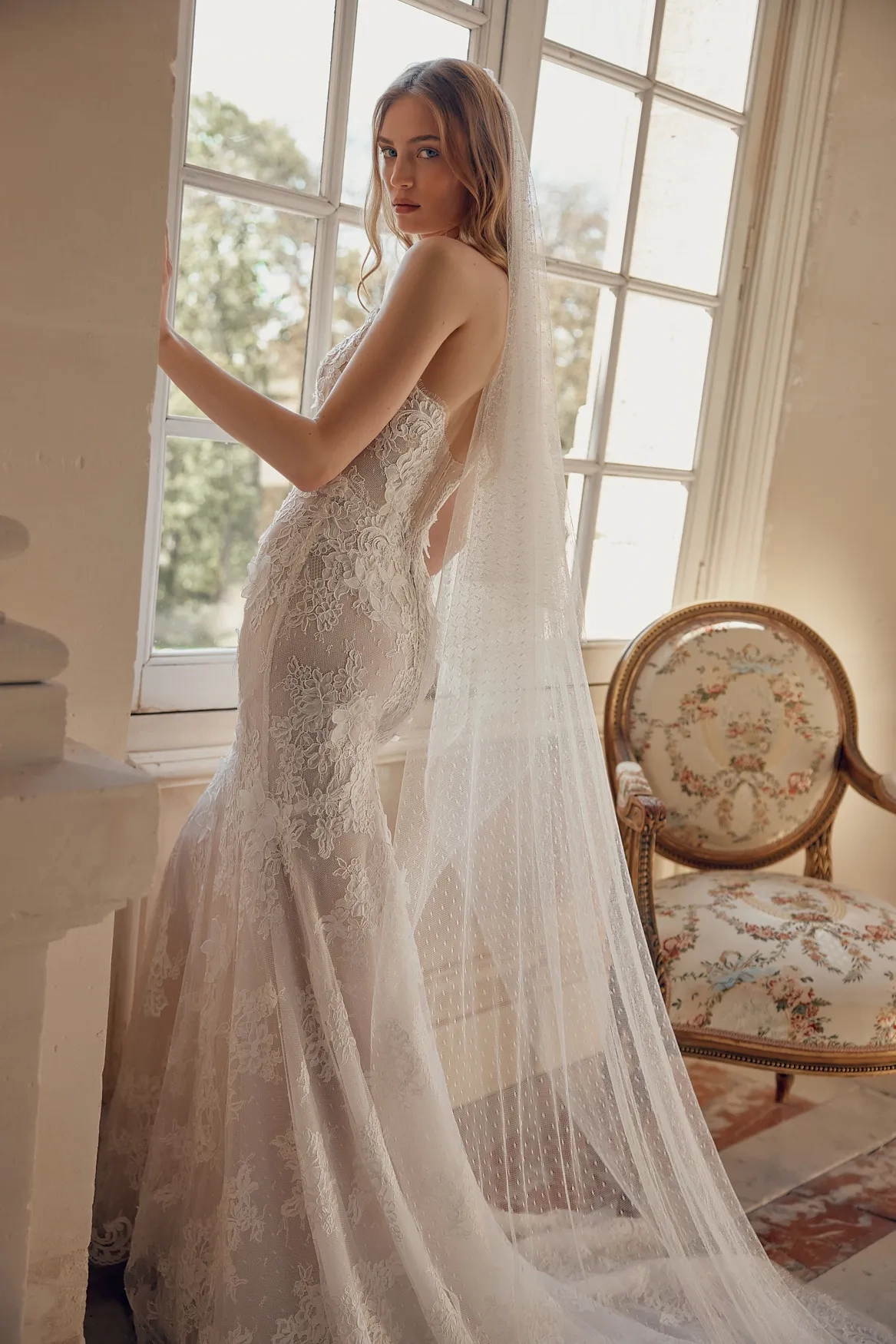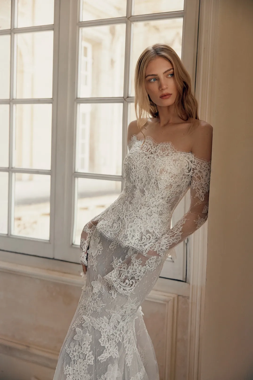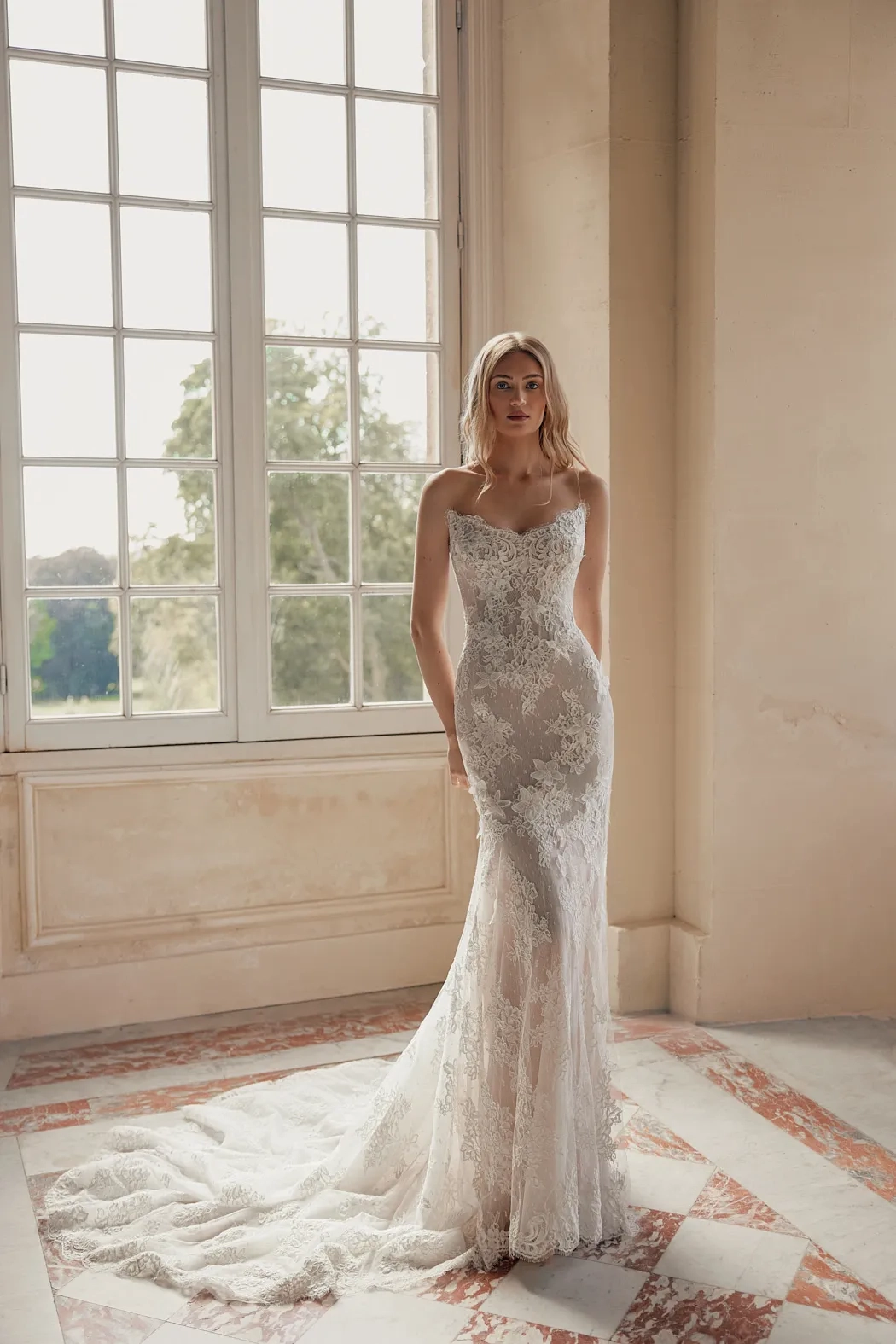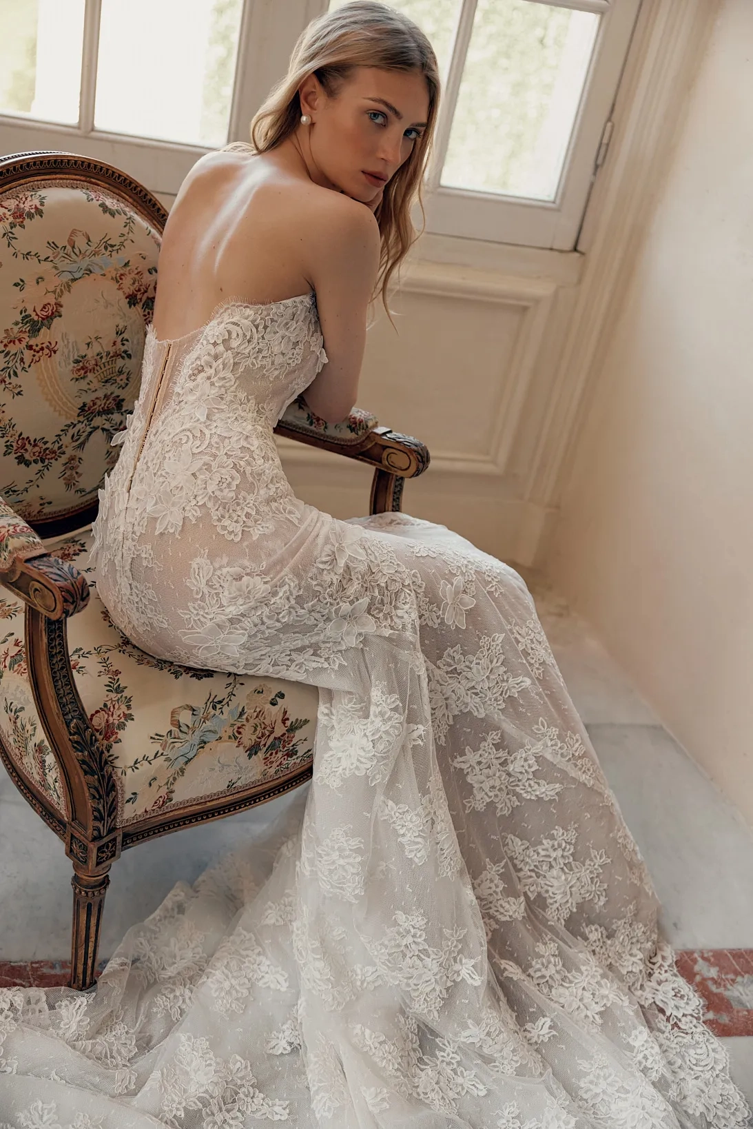 Please note that we are currently showcasing the full collections from our designers. Not all gowns are readily available in-store. To find out more about our in-store inventory, please contact our Chicago Store or our Oakbrook Store.