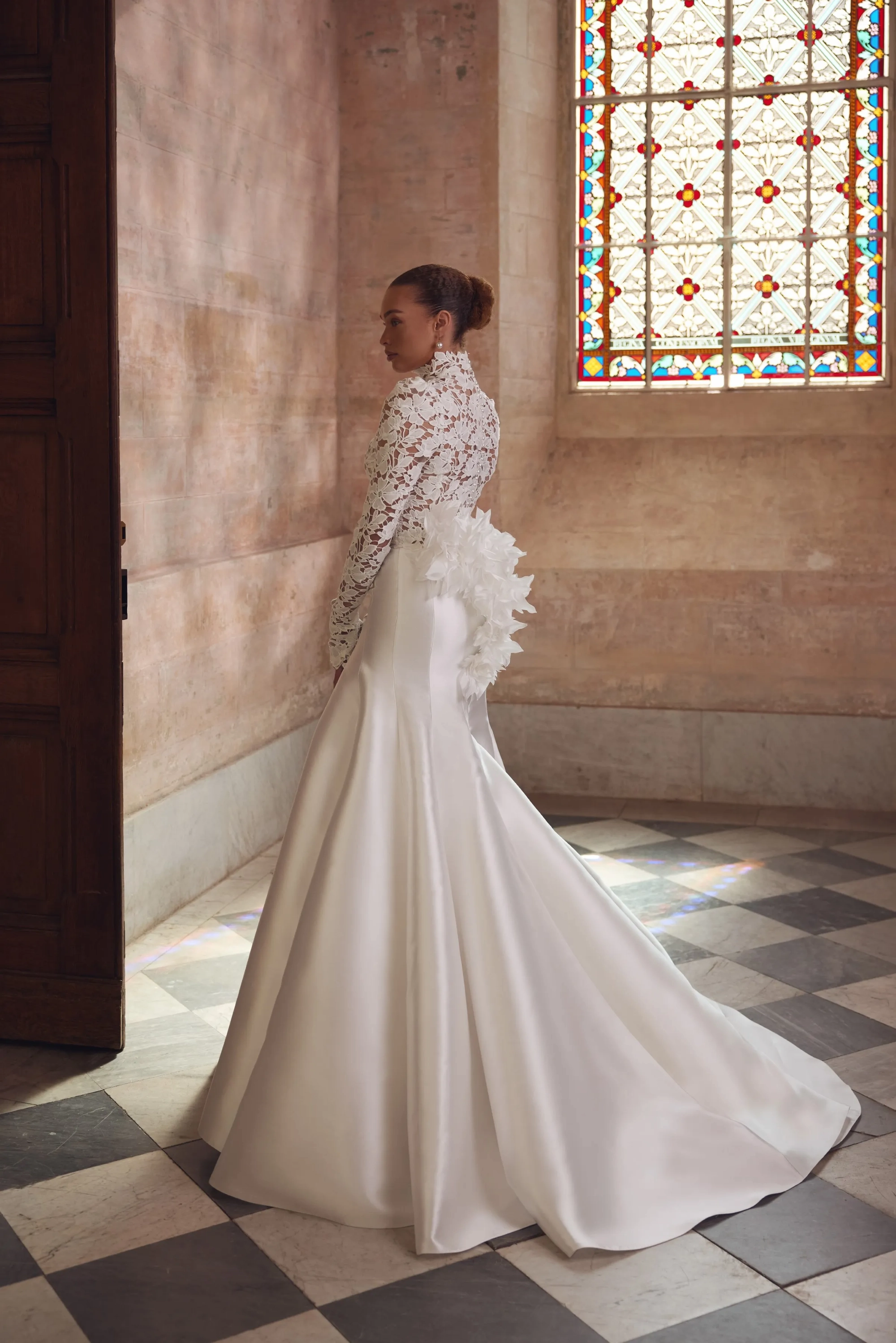 Please note that we are currently showcasing the full collections from our designers. Not all gowns are readily available in-store. To find out more about our in-store inventory, please contact our Chicago Store or our Oakbrook Store.