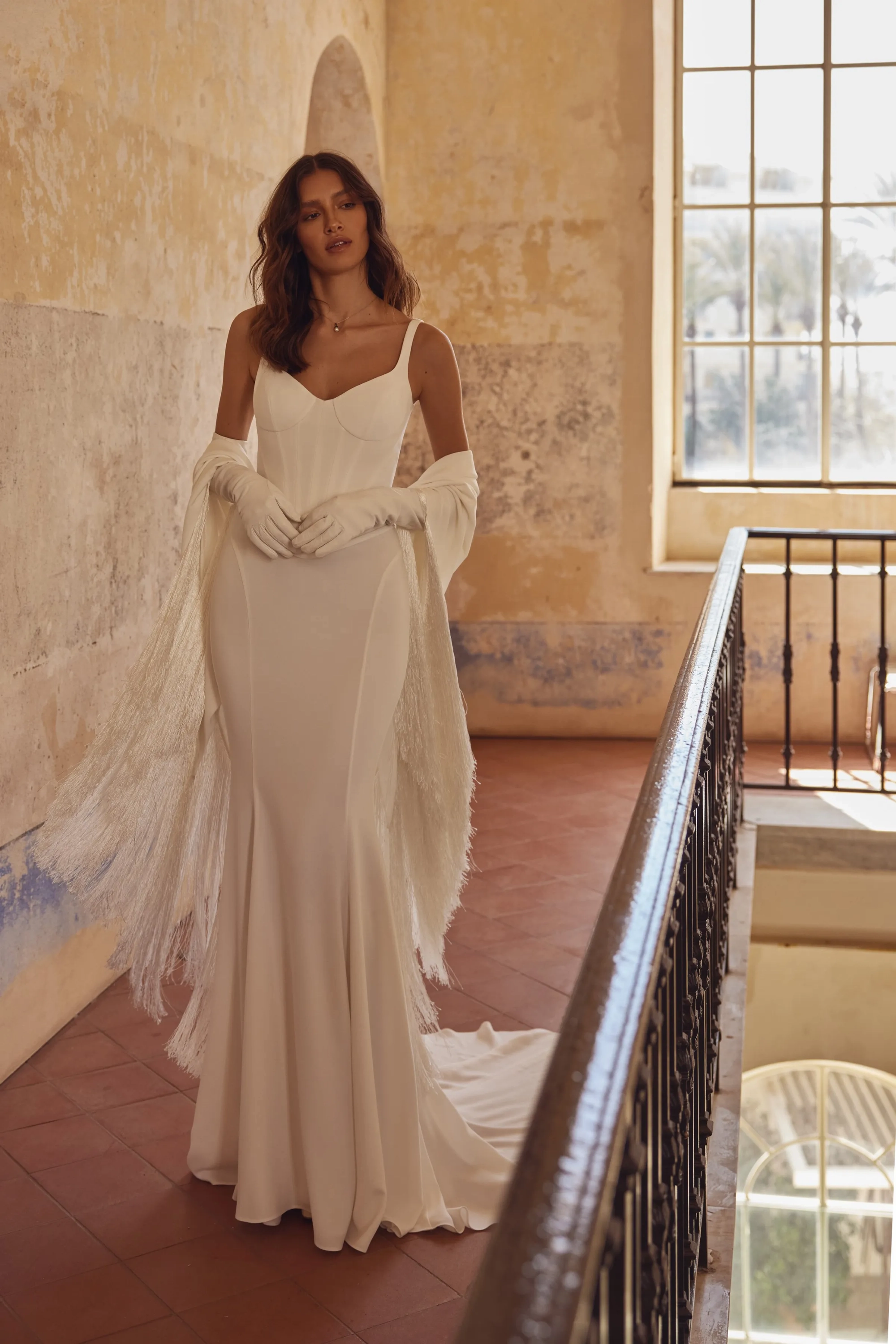 Please note that we are currently showcasing the full collections from our designers. Not all gowns are readily available in-store. To find out more about our in-store inventory, please contact our Chicago Store or our Oakbrook Store.