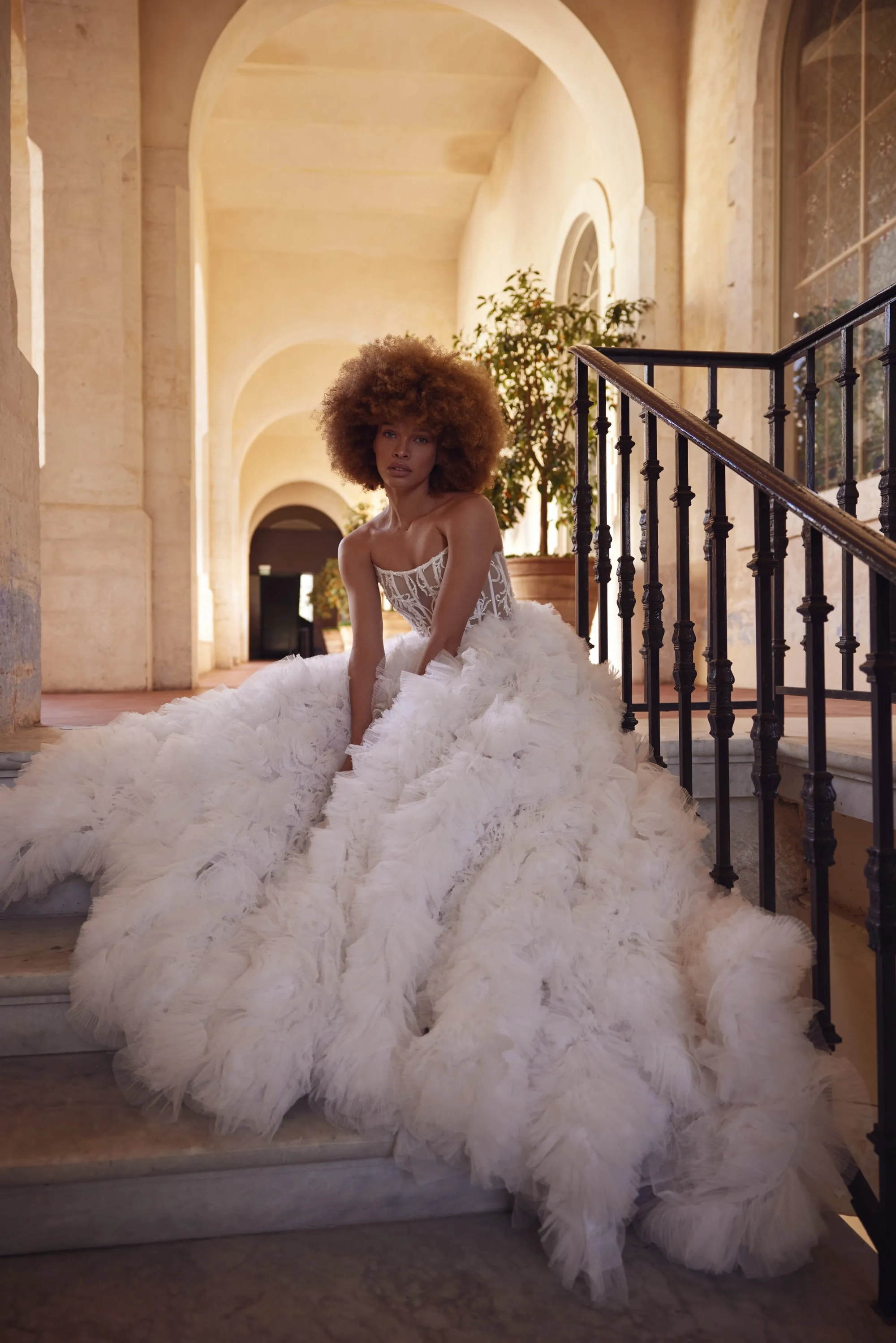 Please note that we are currently showcasing the full collections from our designers. Not all gowns are readily available in-store. To find out more about our in-store inventory, please contact our Chicago Store or our Oakbrook Store.